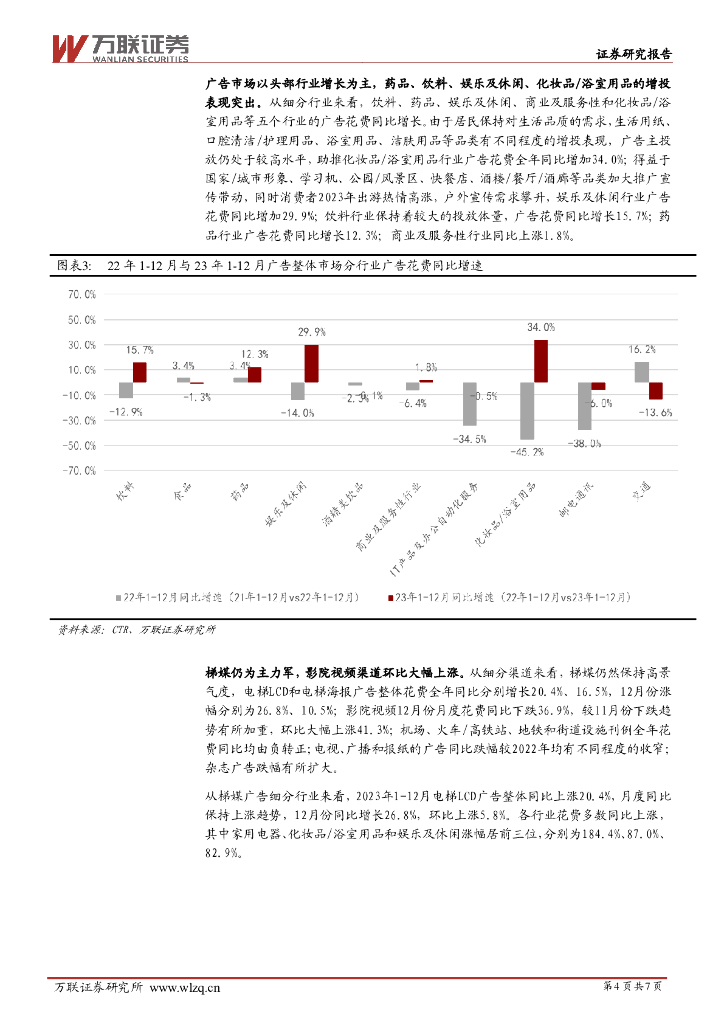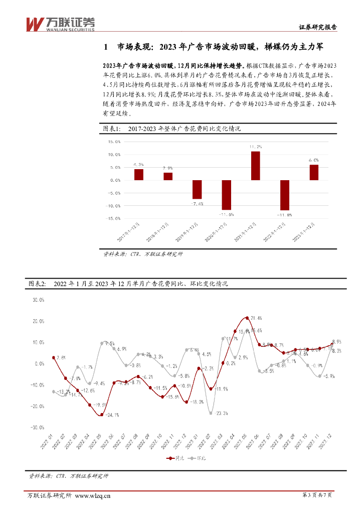 万联证券:传媒行业跟踪报告:2023年广告市场行稳致远,梯媒拉动整体市场回暖.pdf