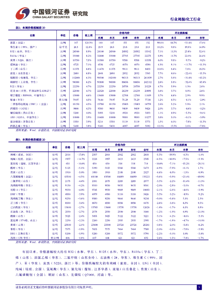 中国银河:行业周报●化工行业:制冷剂、 有机硅中间体价差改善,关注周期弹性与成长性投资机会.pdf