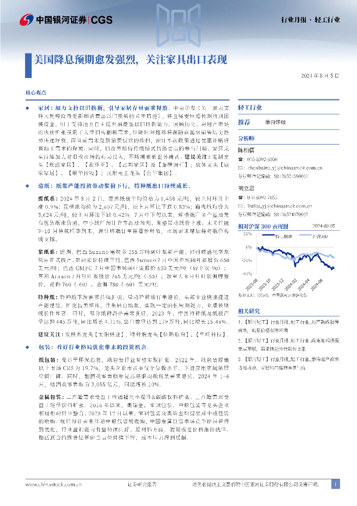 中国银河:轻工行业:美国降息预期愈发强烈,关注家具出口表现.pdf