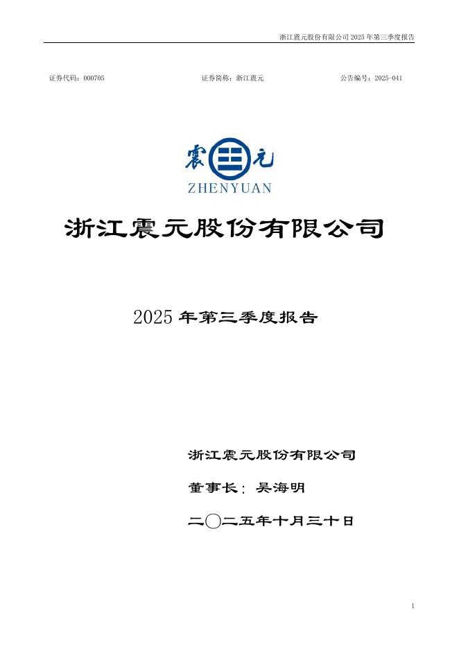 000705-浙江震元:2025年三季度报告.pdf