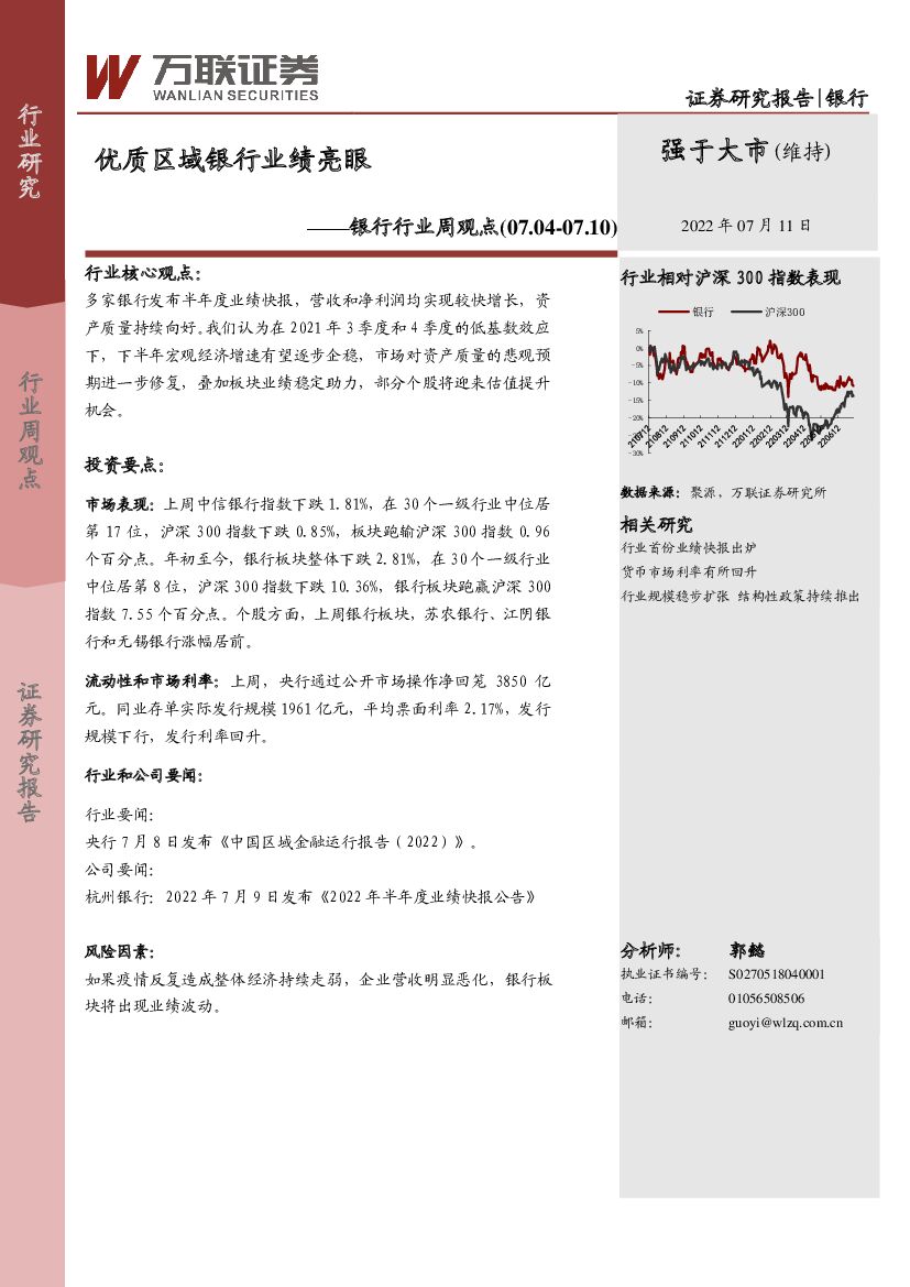 万联证券:银行行业周观点:优质区域银行业绩亮眼.pdf