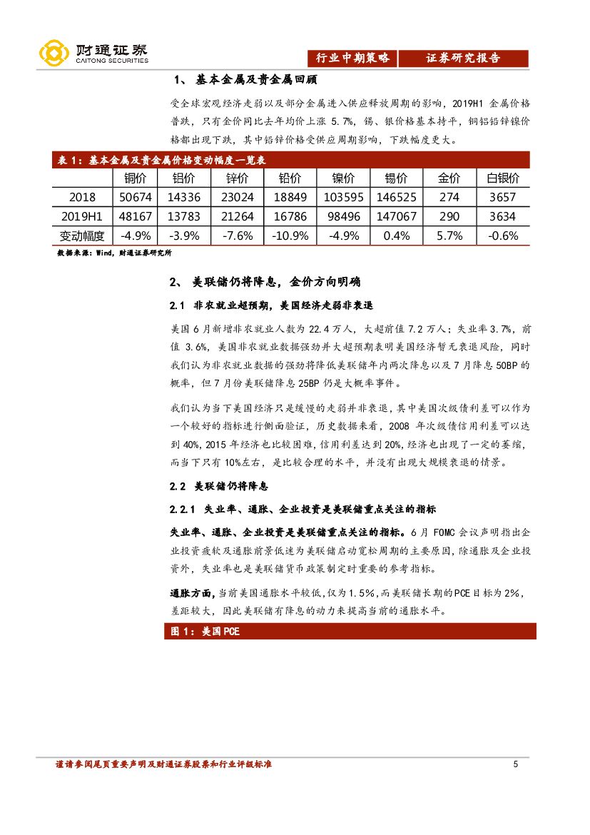 财通证券:2019有色行业中期策略:美联储仍将降息,金价方向明确,铜铝存阶段性机会.pdf