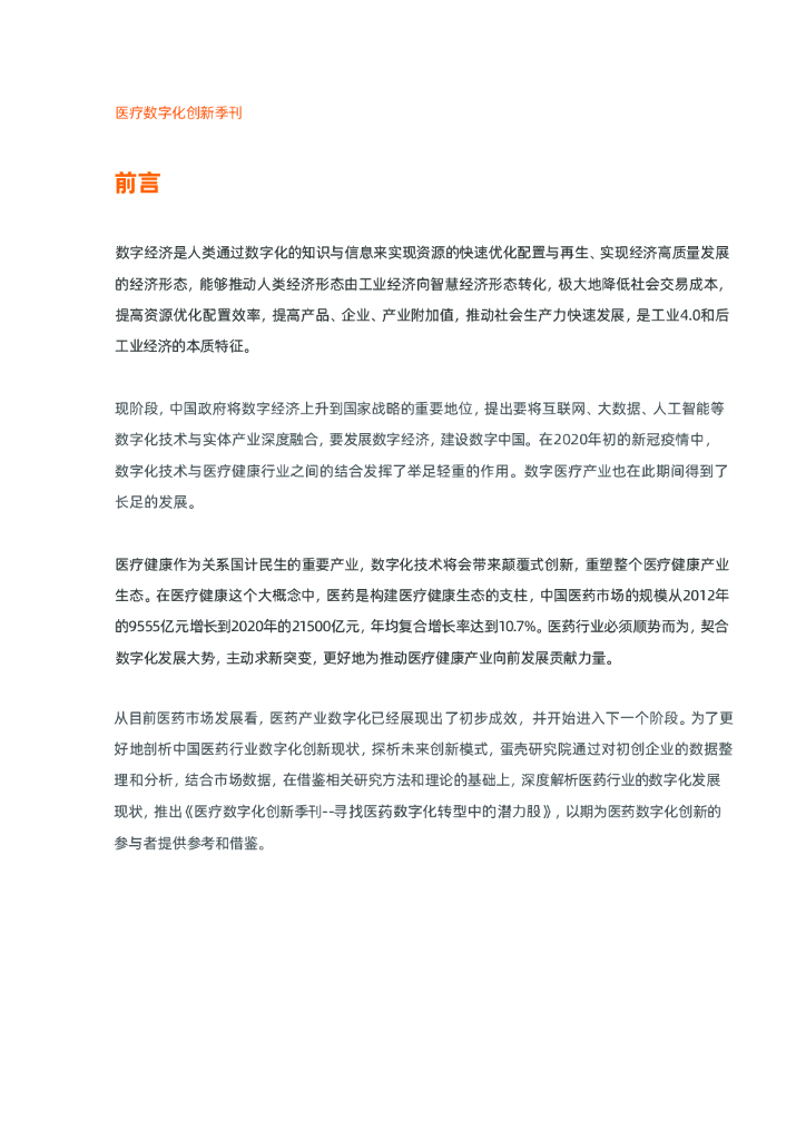 蛋壳研究院:医疗数字化创新季刊-寻找医药数字化转型中的潜力股.pdf