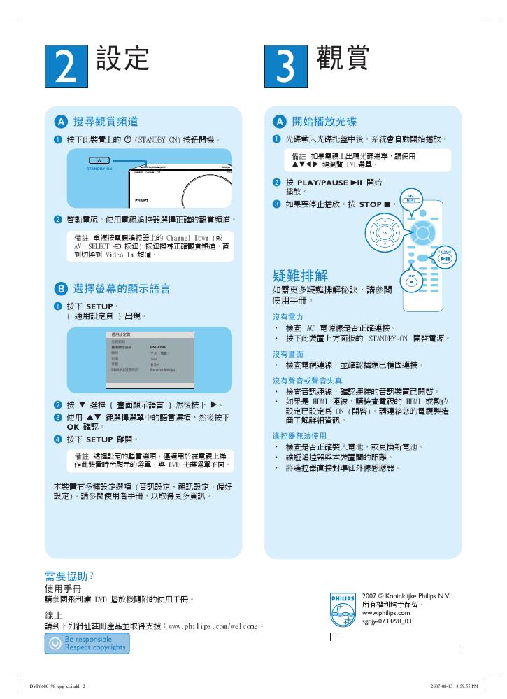 PHILIPS DVP6600 / DVP662播放机 快速入门指南.pdf