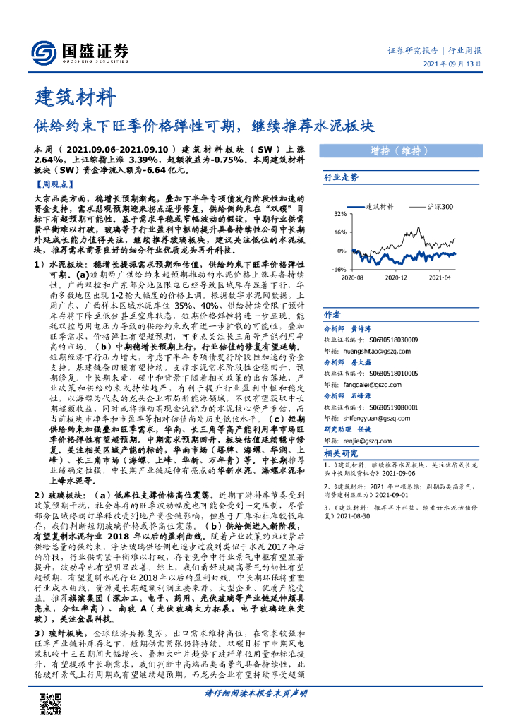 国盛证券:建筑材料行业周报:供给约束下旺季价格弹性可期,继续推荐水泥板块.pdf