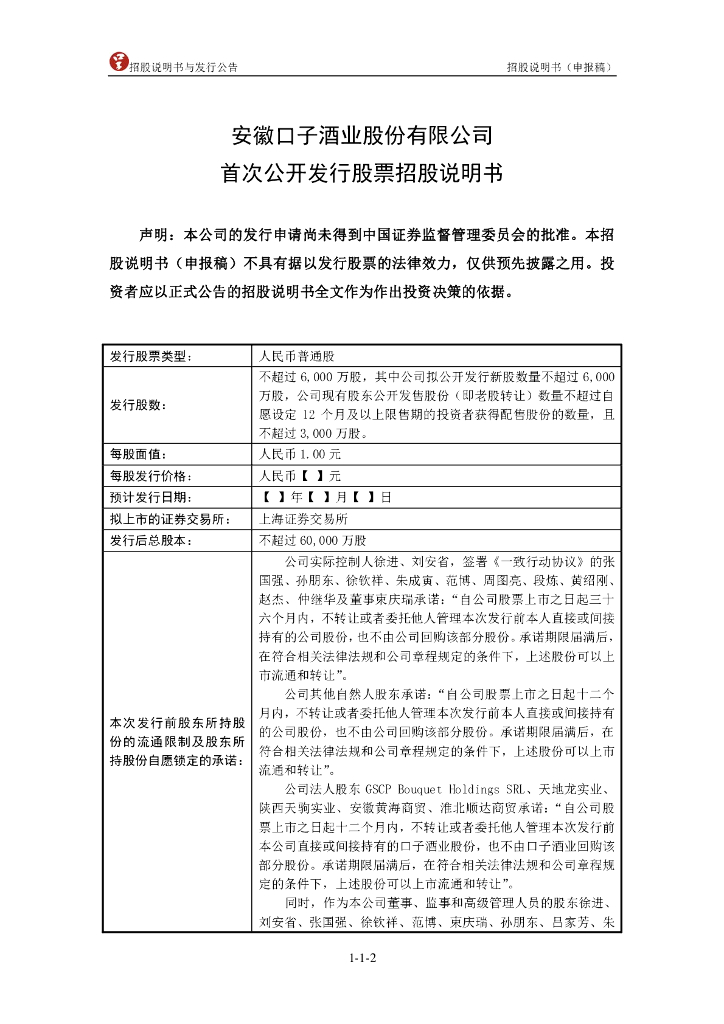 安徽口子酒业股份有限公司上交所主板IPO上市招股说明书.pdf