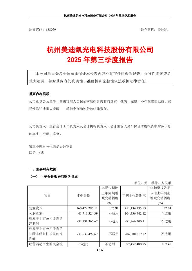 688079-美迪凯:杭州美迪凯光电科技股份有限公司2025年第三季度报告.pdf