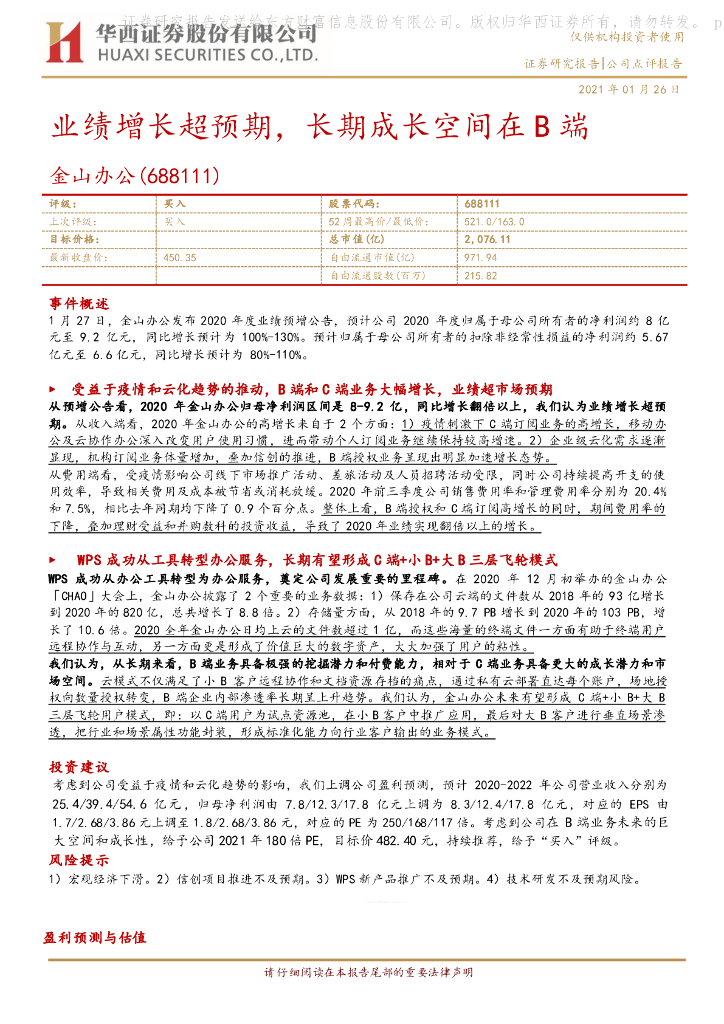 华西证券:金山办公(688111)-业绩增长超预期,长期成长空间在B端.pdf