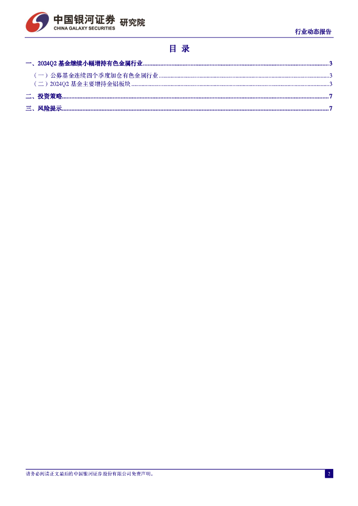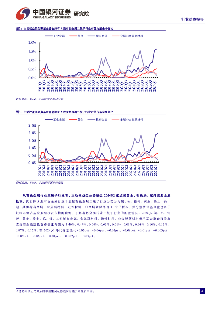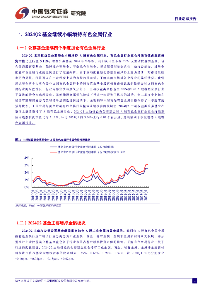 中国银河:有色金属行业2024Q2基金持仓分析:连续四季度增持有色行业,进一步加仓金铜铝板块.pdf