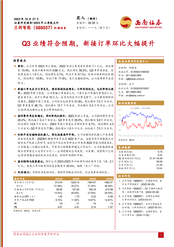 西南证券:兰剑智能(688557)-Q3业绩符合预期,新接订单环比大幅提升.pdf