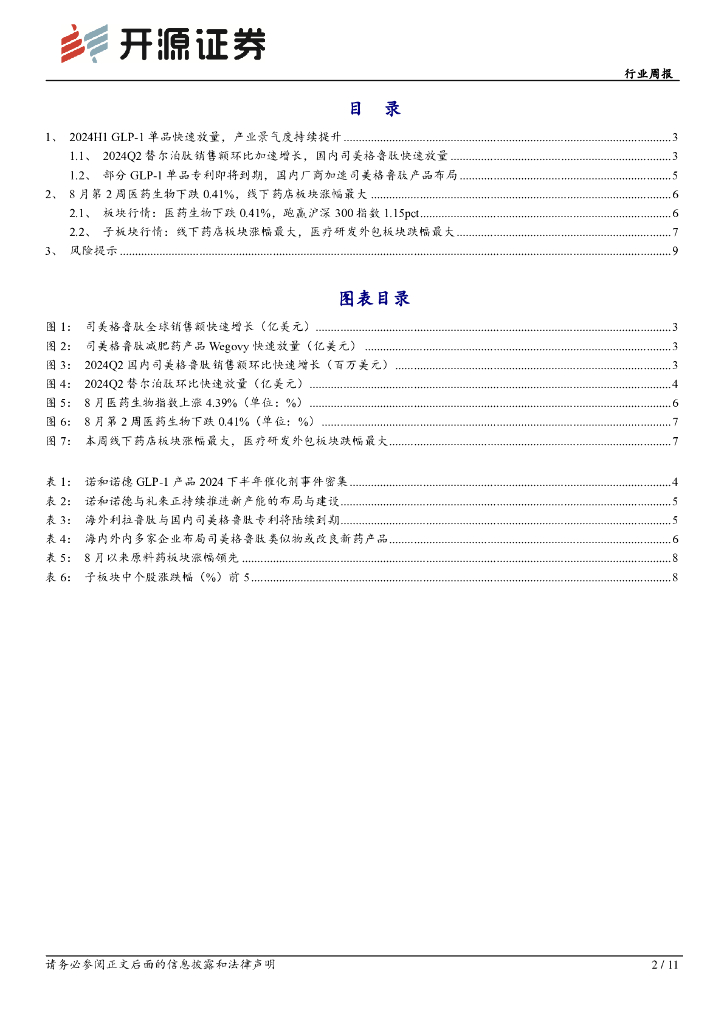 开源证券:医药生物行业周报:2024H1GLP-1单品快速放量,产业景气度持续提升.pdf