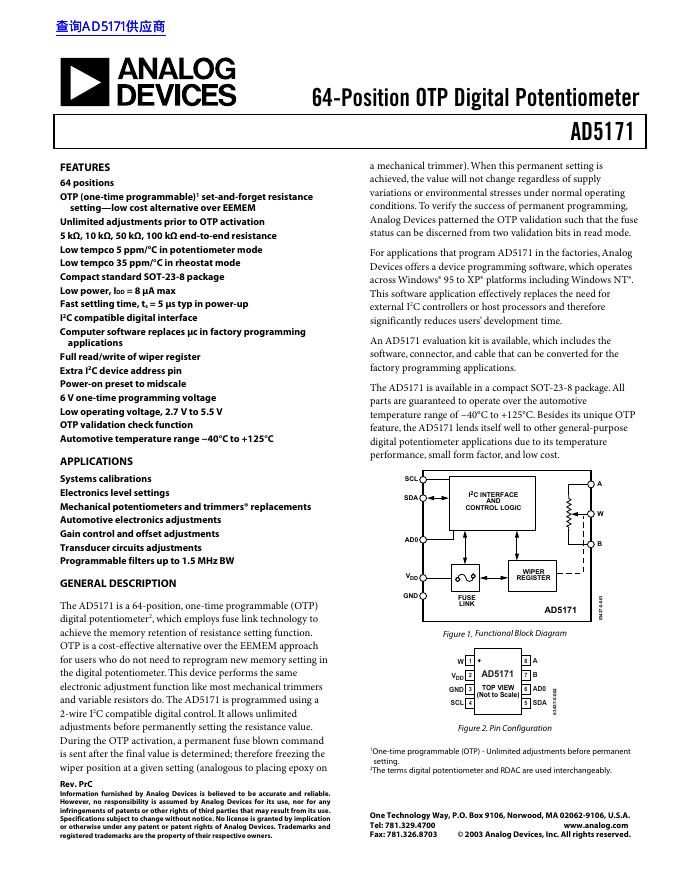 ANALOG DEVICES AD5171 数据手册 (1).pdf