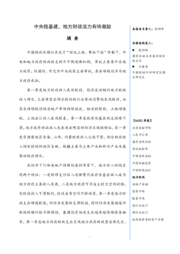 NIFD季报:中央稳基建,地方财政活力有待激励——2024Q1地方区域财政.pdf