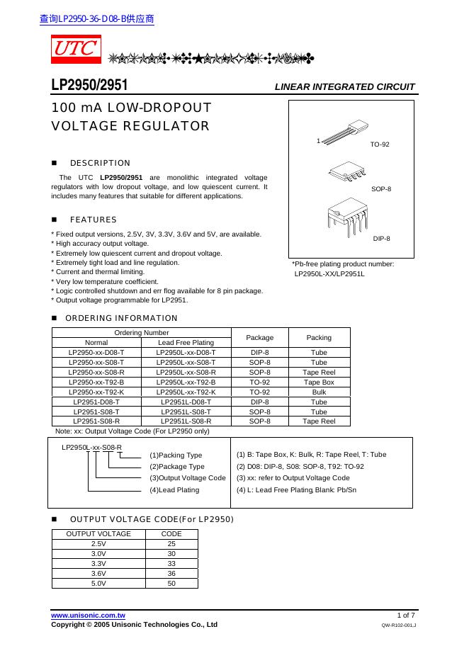 National semiconductor LP2950/LP2951 Series of Adjustable Micropower Voltage Regulators 说明书