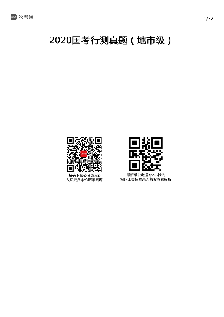 2020年国家公务员考试行测真题及答案(地市级).pdf