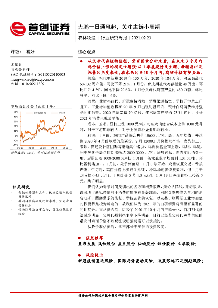 首创证券:农林牧渔行业研究周报:大鹏一日通风起,关注禽链小周期.pdf