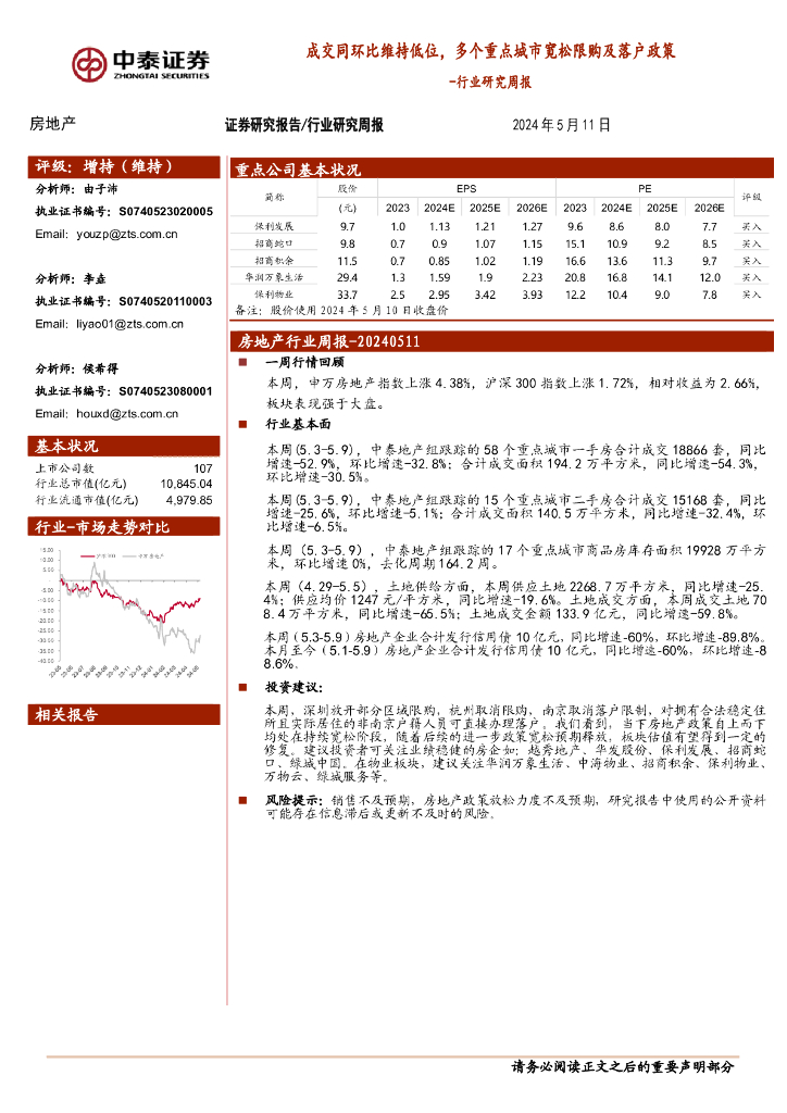 中泰证券:房地产行业研究周报:成交同环比维持低位,多个重点城市宽松限购及落户政策.pdf