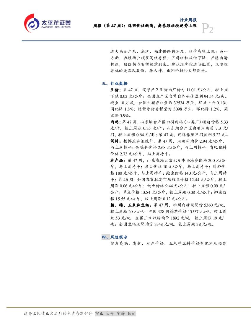 太平洋证券:农林牧渔:周报(第47周):鸡苗价格新高,禽养殖板块逆势上涨.pdf