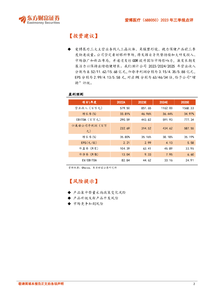 东方财富证券:爱博医疗(688050)-2023年三季报点评:三大主营快速放量,产品矩阵增力强劲.pdf