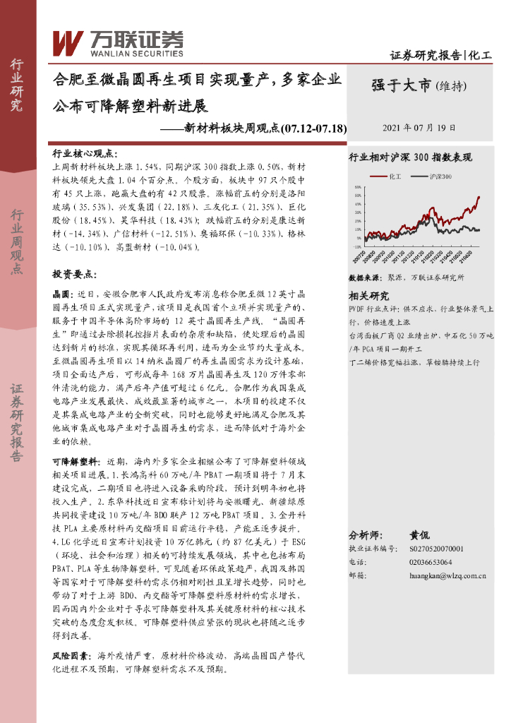 万联证券:新材料板块周观点:合肥至微晶圆再生项目实现量产,多家企业公布可降解塑料新进展.pdf