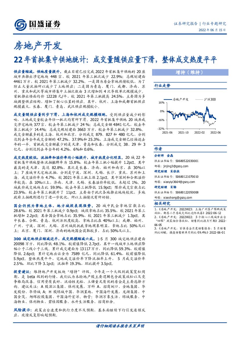 国盛证券:房地产开发22年首批集中供地统计:成交量随供应量下滑,整体成交热度平平.pdf