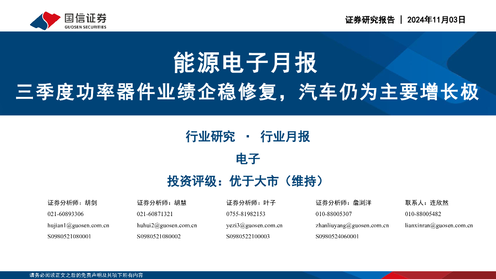 国信证券:能源电子月报:三季度功率器件业绩企稳修复,汽车仍为主要增长极.pdf