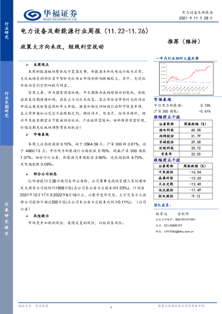 华福证券:电力设备及新能源行业周报:政策大方向未改,短线利空扰动.pdf