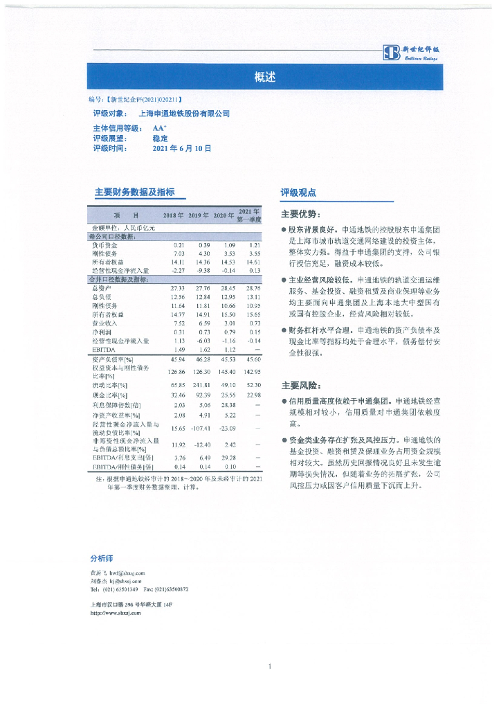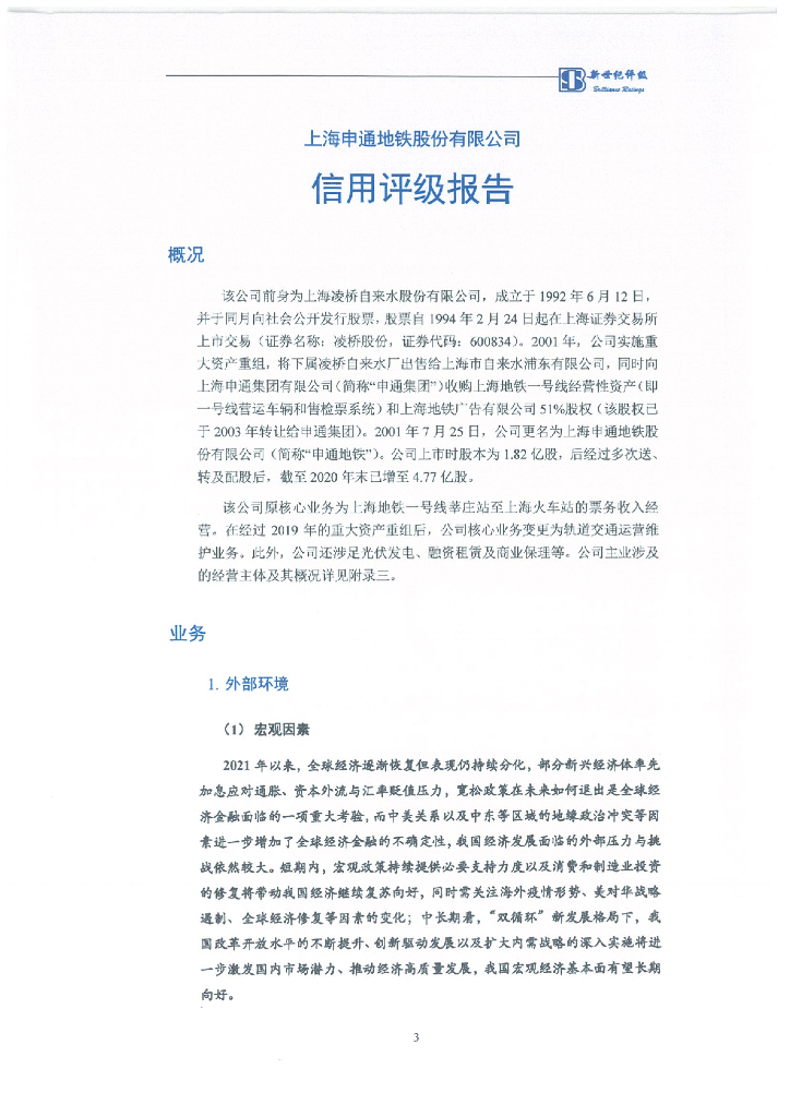 新世纪:上海申通地铁股份有限公司主体评级报告及跟踪评级安排.pdf