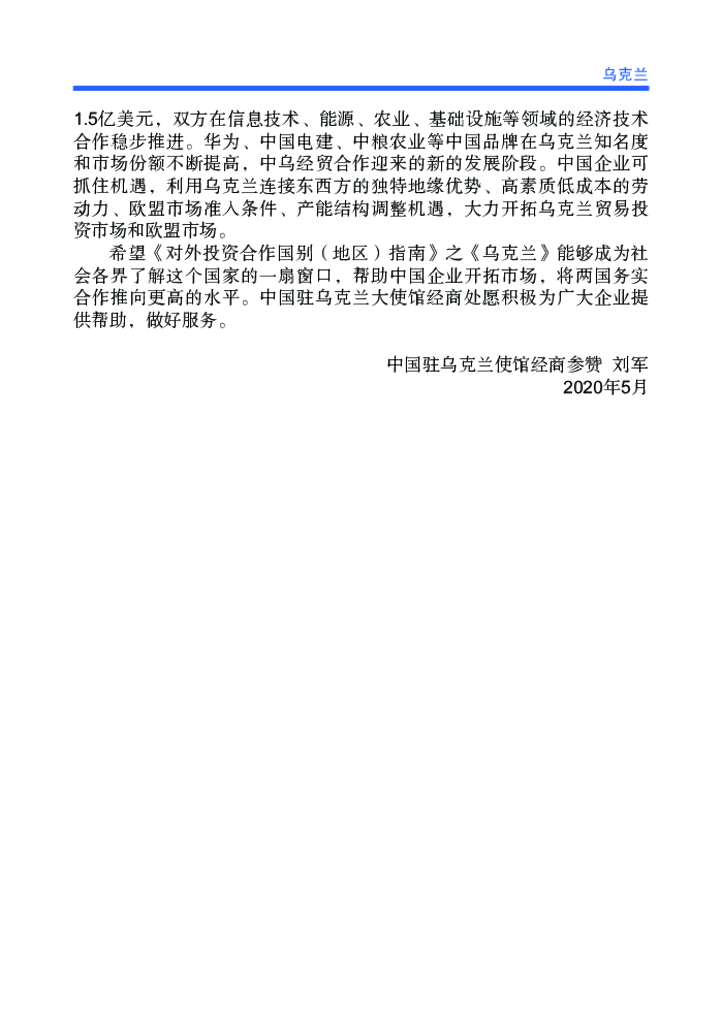 商务部:对外投资合作国别(地区)指南:乌克兰(2020年版).pdf