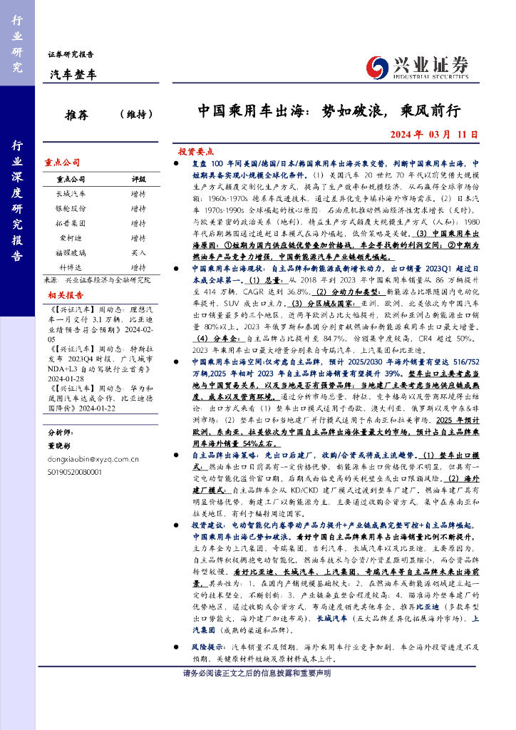 兴业证券:汽车整车行业:中国乘用车出海,势如破浪,乘风前行.pdf