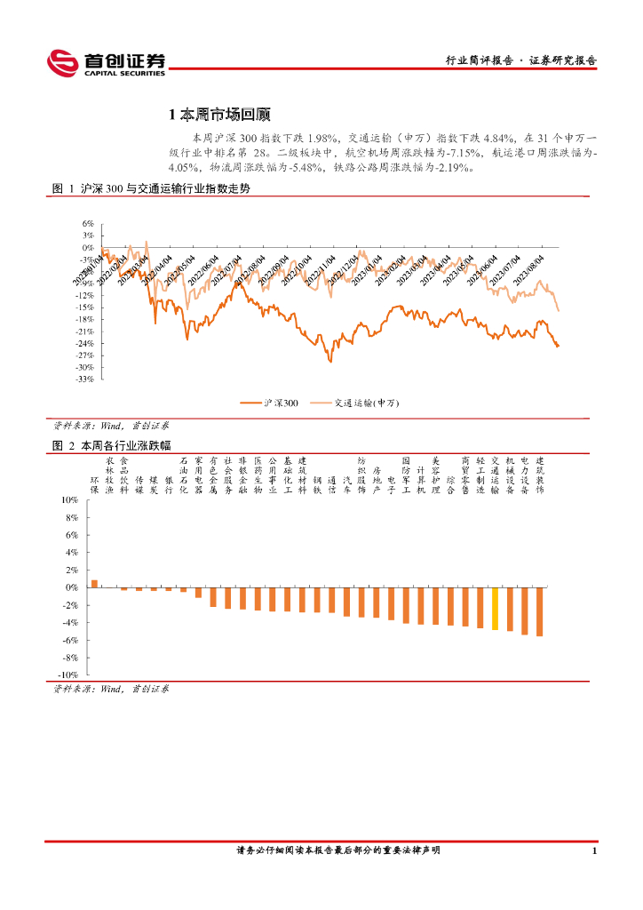 首创证券:交通运输周报:暑运期间航班班次及旅客人次超19年11%、7%,“复苏”成民航业关键词.pdf