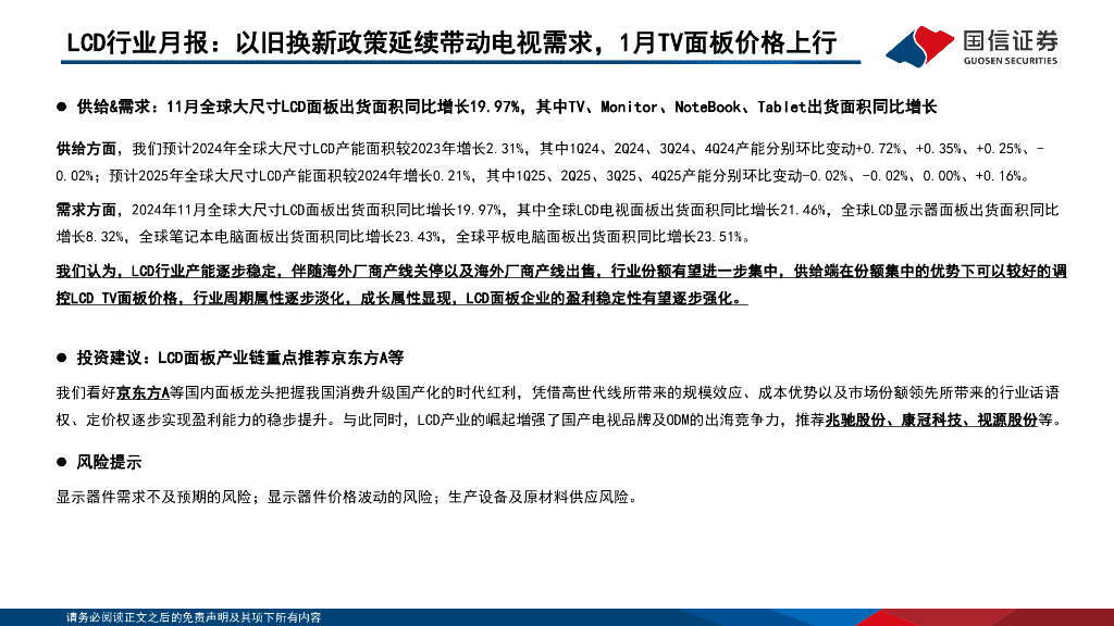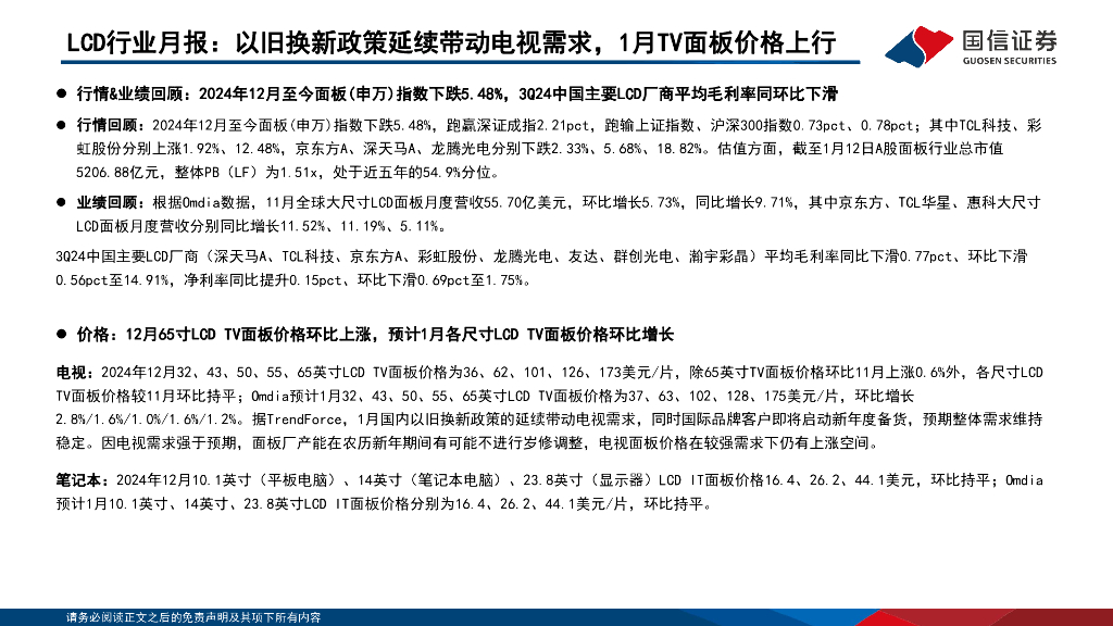 国信证券:LCD行业月报:以旧换新政策延续带动电视需求,1月TV面板价格上行.pdf