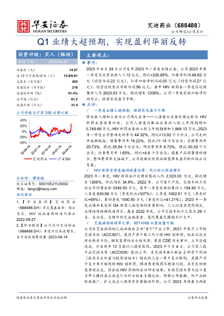 华安证券:艾迪药业(688488)-Q1业绩大超预期,实现盈利华丽反转.pdf