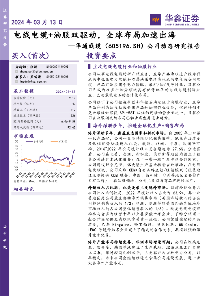 华鑫证券:华通线缆(605196)-公司动态研究报告:电线电缆+油服双驱动,全球布局加速出海.pdf