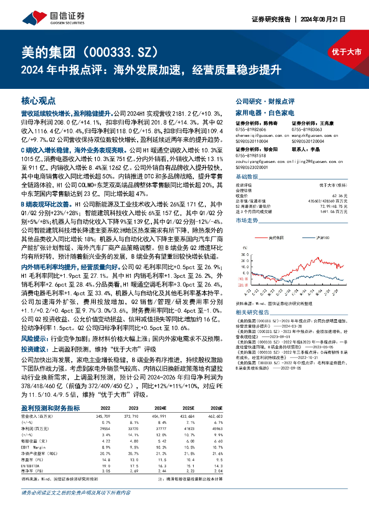 国信证券:美的集团(000333)-2024年中报点评:海外发展加速,经营质量稳步提升.pdf