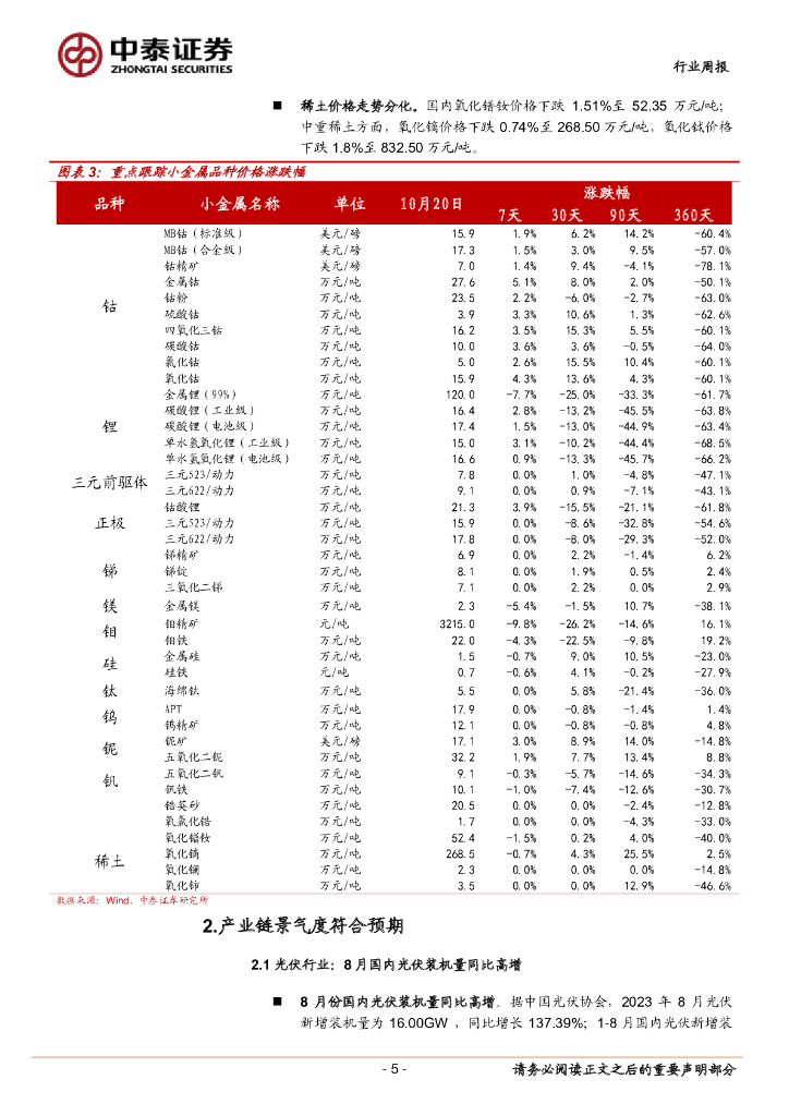 中泰证券:有色金属行业周报:澳洲部分矿山定价机制改变,锂盐价格走弱.pdf