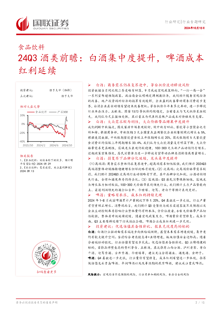 国联证券:食品饮料行业专题研究:24Q3酒类前瞻:白酒集中度提升,啤酒成本红利延续.pdf
