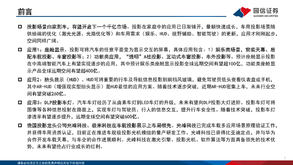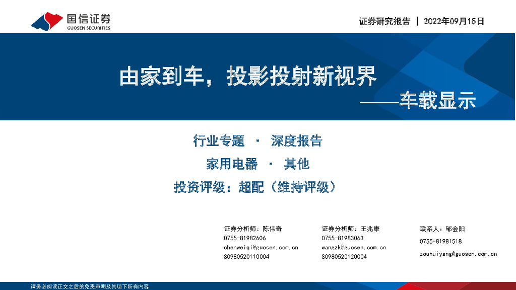 国信证券:家用电器行业专题·深度报告:车载显示-由家到车,投影投射新视界.pdf