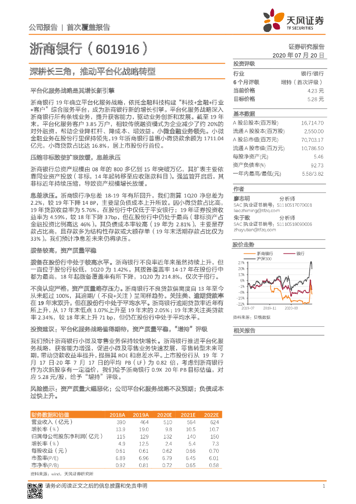 天风证券:浙商银行(601916)-深耕长三角,推动平台化战略转型.pdf