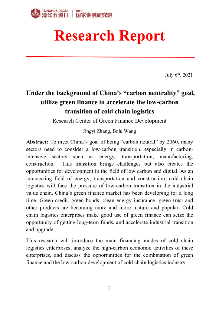 清华五道口:“碳中和”背景下,善用绿色金融加速冷链物流低碳发展.pdf