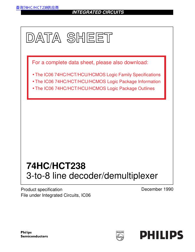PHILIPS 74HC/HCT238 3-to-8 line decoder/demultiplexer 数据手册.pdf