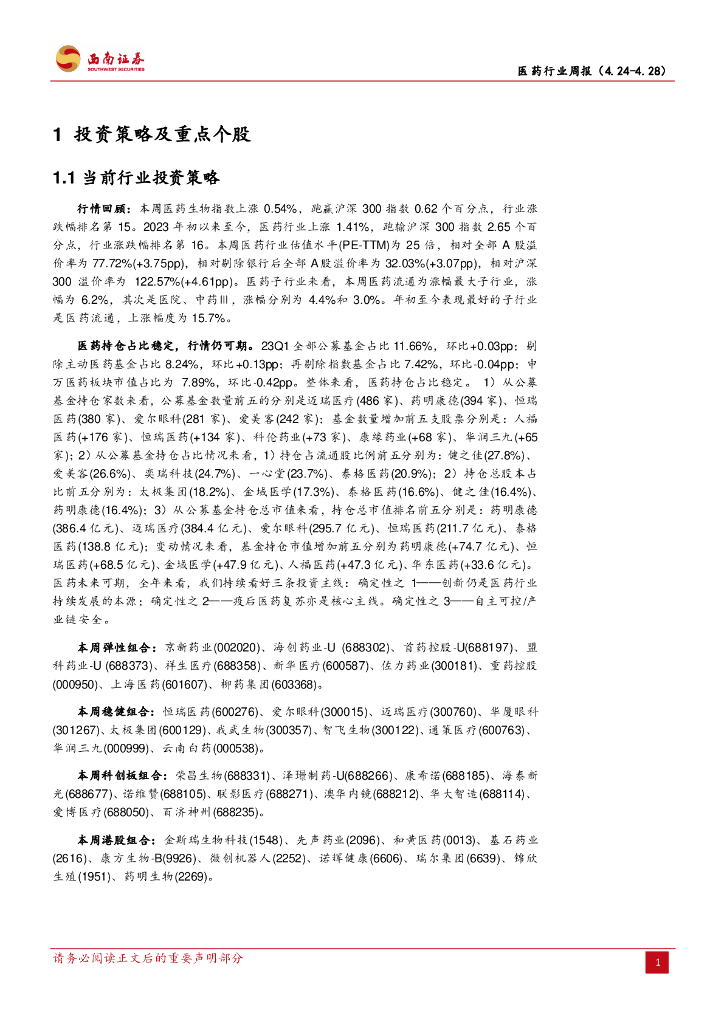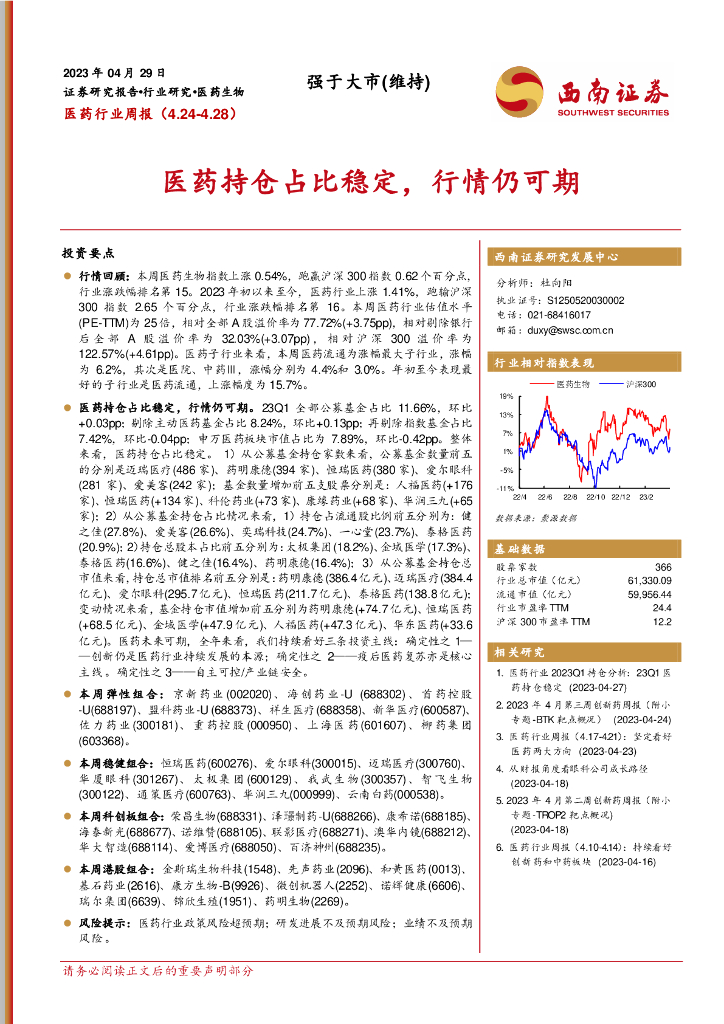 西南证券:医药行业周报:医药持仓占比稳定,行情仍可期.pdf