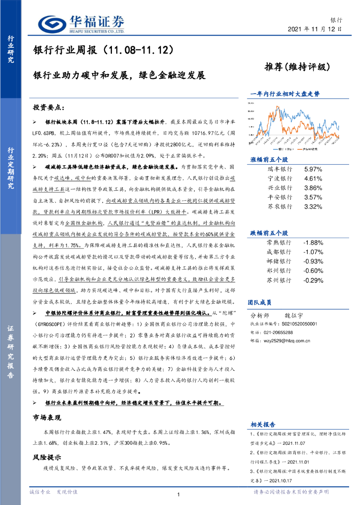 华福证券:银行行业周报:银行业助力碳中和发展,绿色金融迎发展.pdf