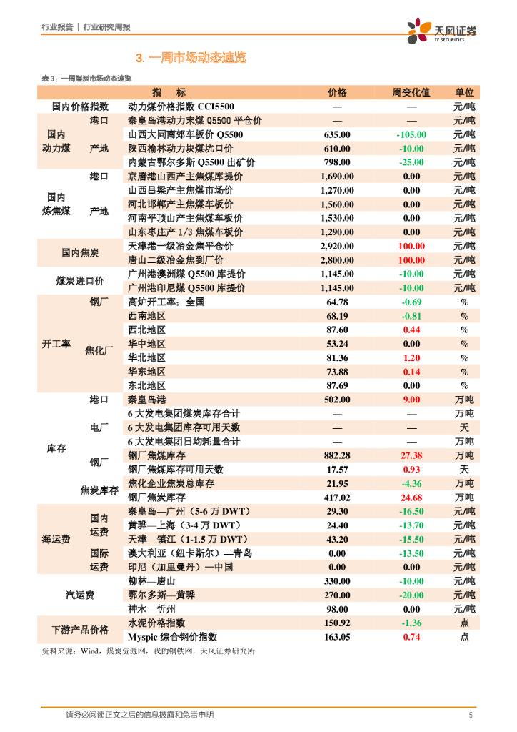天风证券:煤炭开采一周煤炭动向:焦炭价格连续十五轮上涨,焦企吨焦利润升至历史新高.pdf