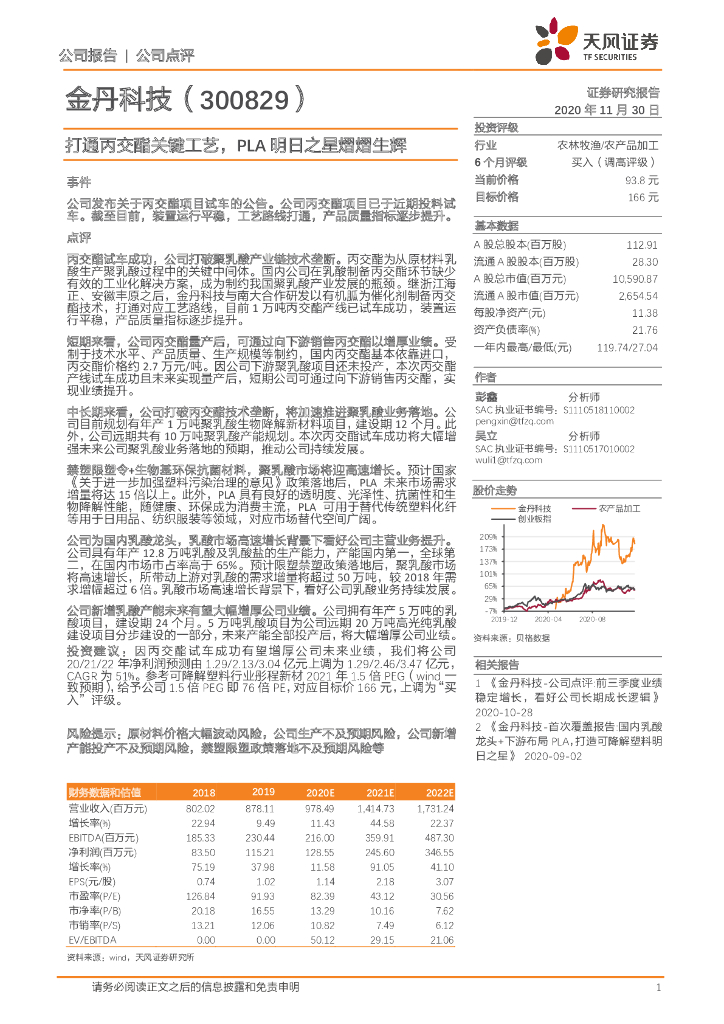 天风证券:金丹科技(300829)-打通丙交酯关键工艺,PLA明日之星熠熠生辉.pdf