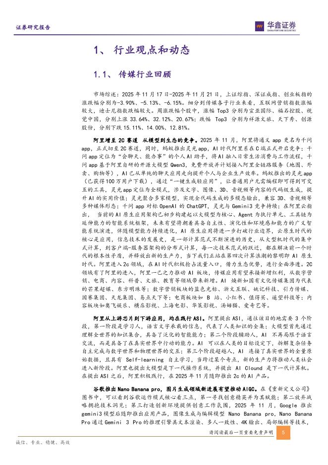 华鑫证券:传媒行业周报:从阿里到谷歌AI竞争增至应用.pdf