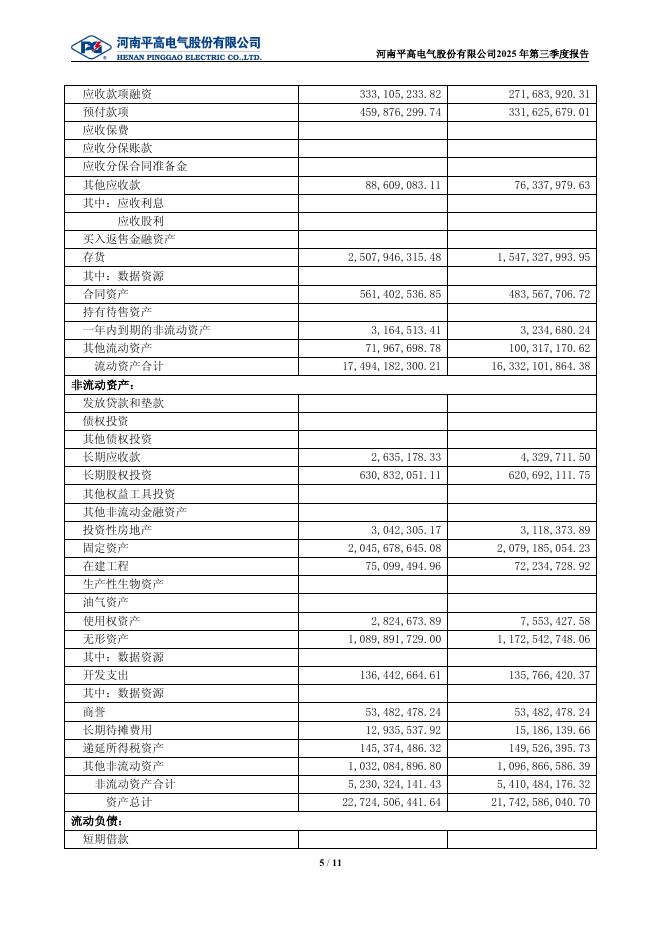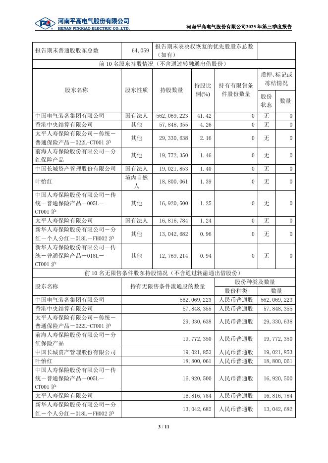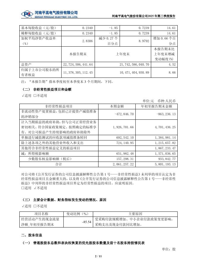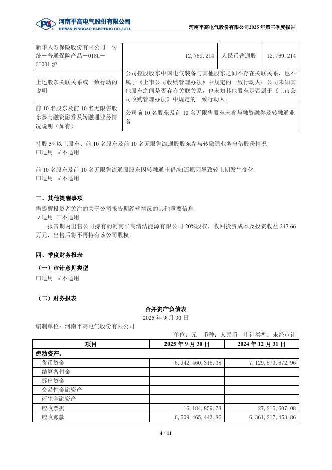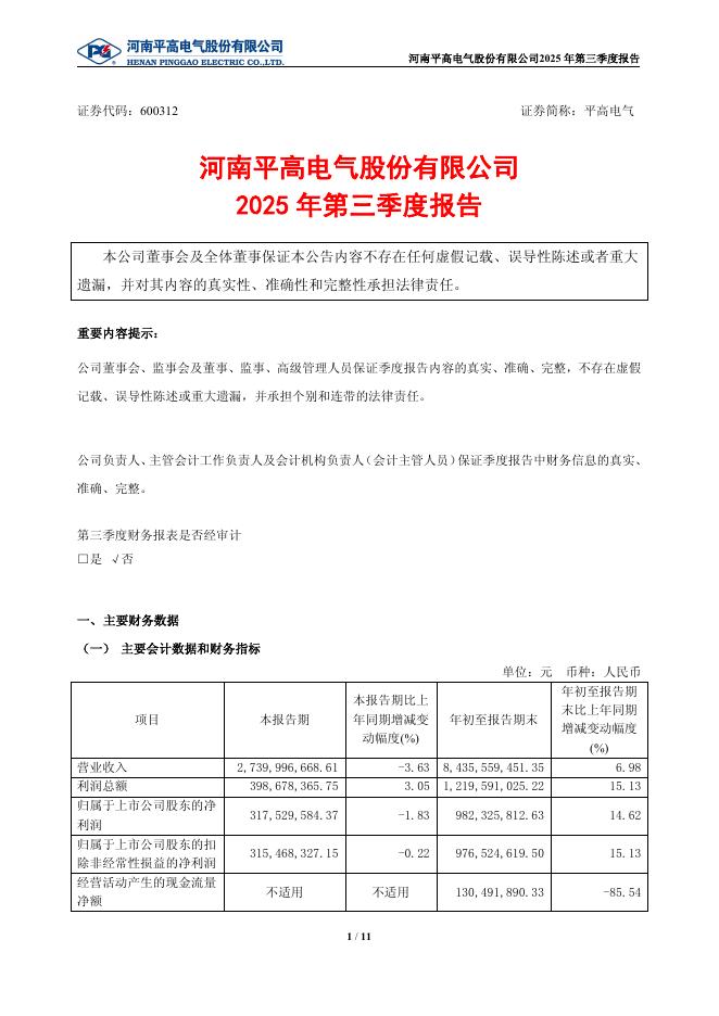 600312-平高电气:河南平高电气股份有限公司2025年第三季度报告.pdf
