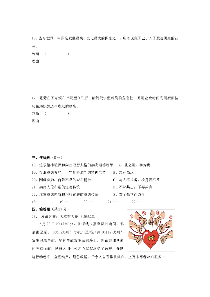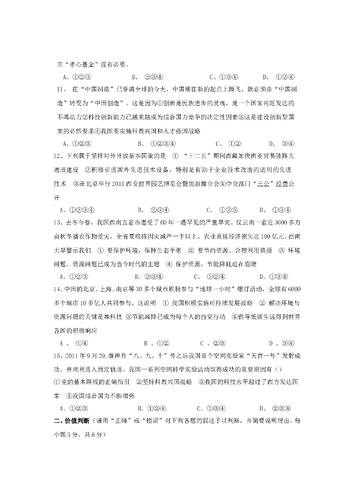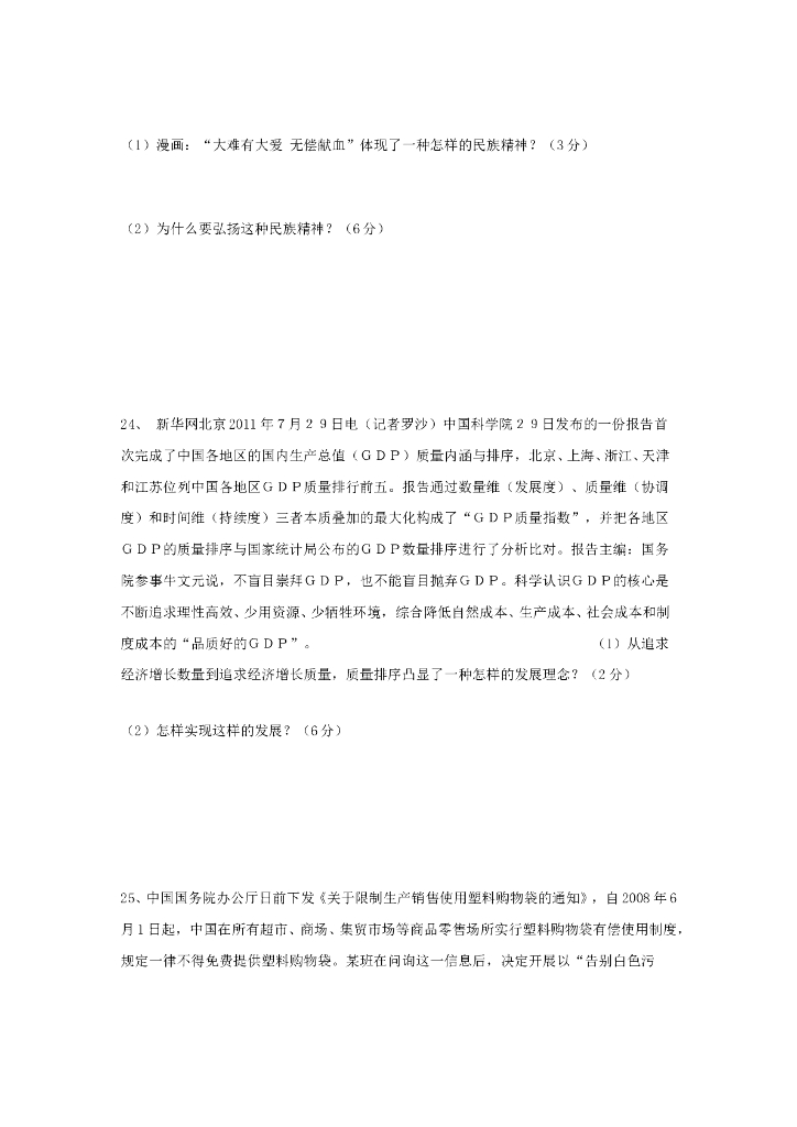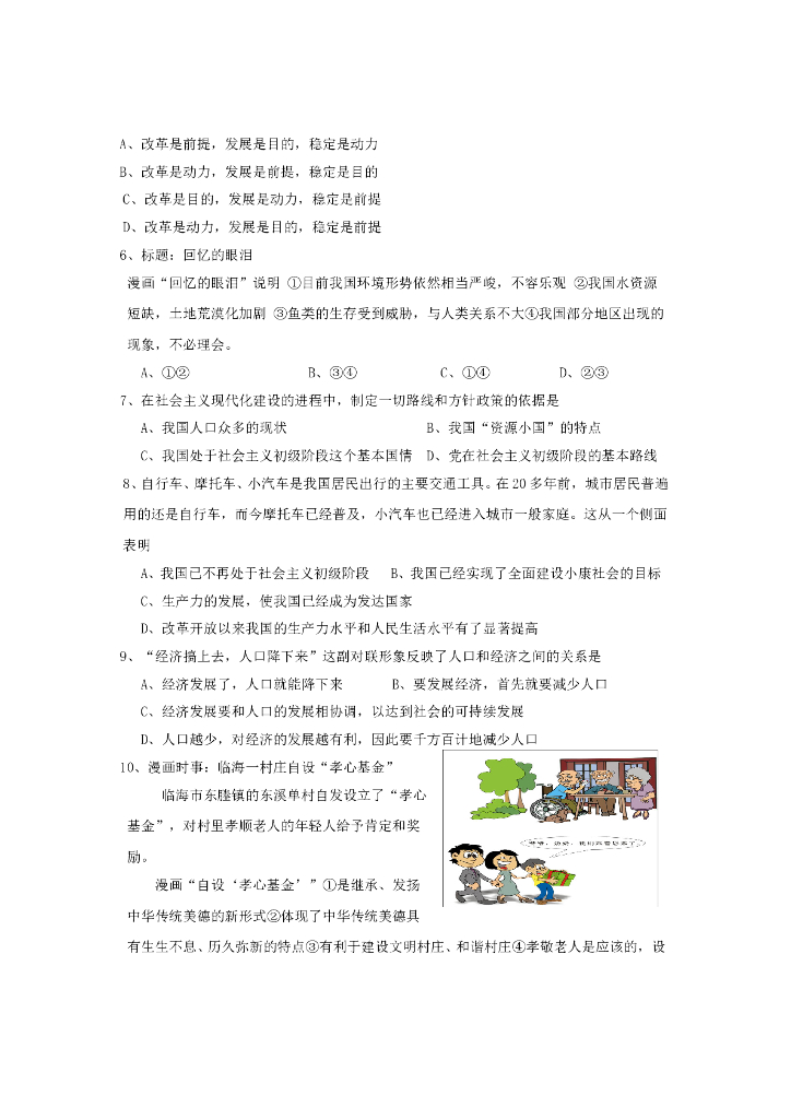 九年级政治第一学期第2单元测试卷(人教新课标版) .doc