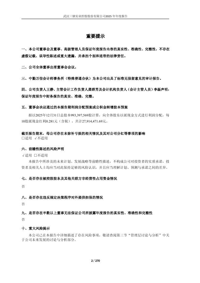 600168-武汉控股:武汉三镇实业控股股份有限公司2025年年度报告.pdf