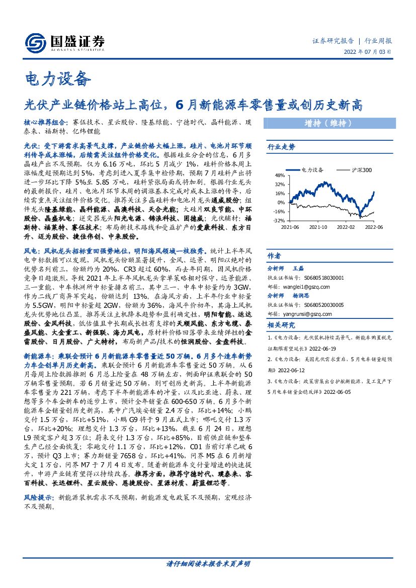 国盛证券:电力设备行业周报:光伏产业链价格站上高位,6月新能源车零售量或创历史新高.pdf